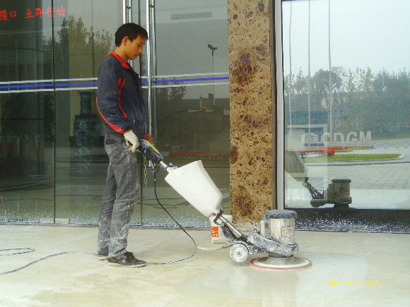 再到80年代末,緣自歐洲程序的一種工藝,“晶面處理系統(tǒng)”于90年代推進(jìn)中國市場。這個(gè)系統(tǒng)就是針對(duì)水蠟工藝上硬度、光澤、清澈度不夠及工藝復(fù)雜等不足改良而成的,其工藝原理就是在石材投入使用及未受磨損前,以幾種水晶加強(qiáng)劑配合機(jī)械,利用石塊籍壓于熱力產(chǎn)生之化學(xué)作用,先將石材表層下的氣孔封閉,使其污垢不能滲入,同時(shí)表層上加上幾層熱處理保護(hù)層,起到增加石材表面的硬度和光度,更有防滑之功效,石質(zhì)原有天然色澤得到帶出及全面性保護(hù),保持度教一般水蠟高幾倍。長期使用,耗用的人力物料成本較水蠟低,無須每天補(bǔ)蠟及定期起蠟等復(fù)雜工序,此工藝為目前大理石保養(yǎng)及翻新后晶面的理想工藝,我們稱為石材打蠟第三代。